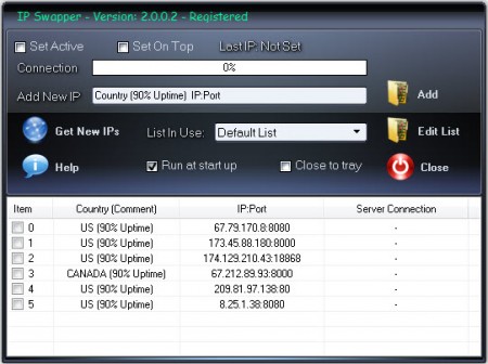 Includes several working proxy IPs to choose from. More free IPs around the world (updated every minute) are available to add to list.
